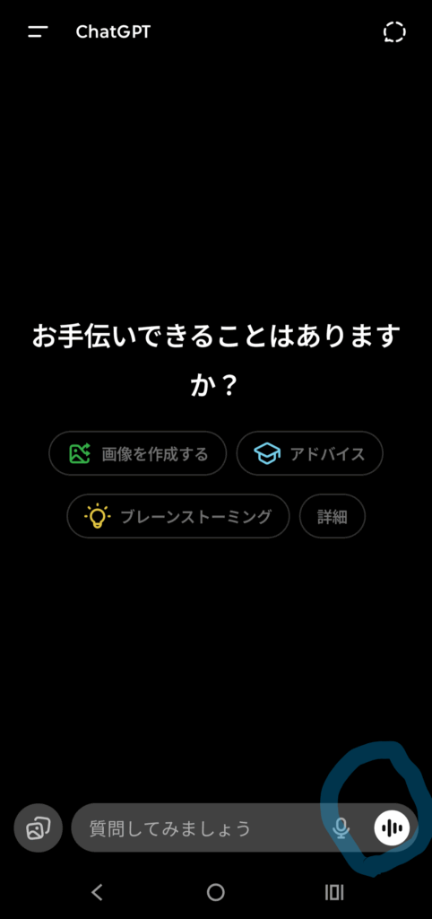 プロンプトを入力後、画面右下の音声マーク(青で囲った白いボタン)を押してください。